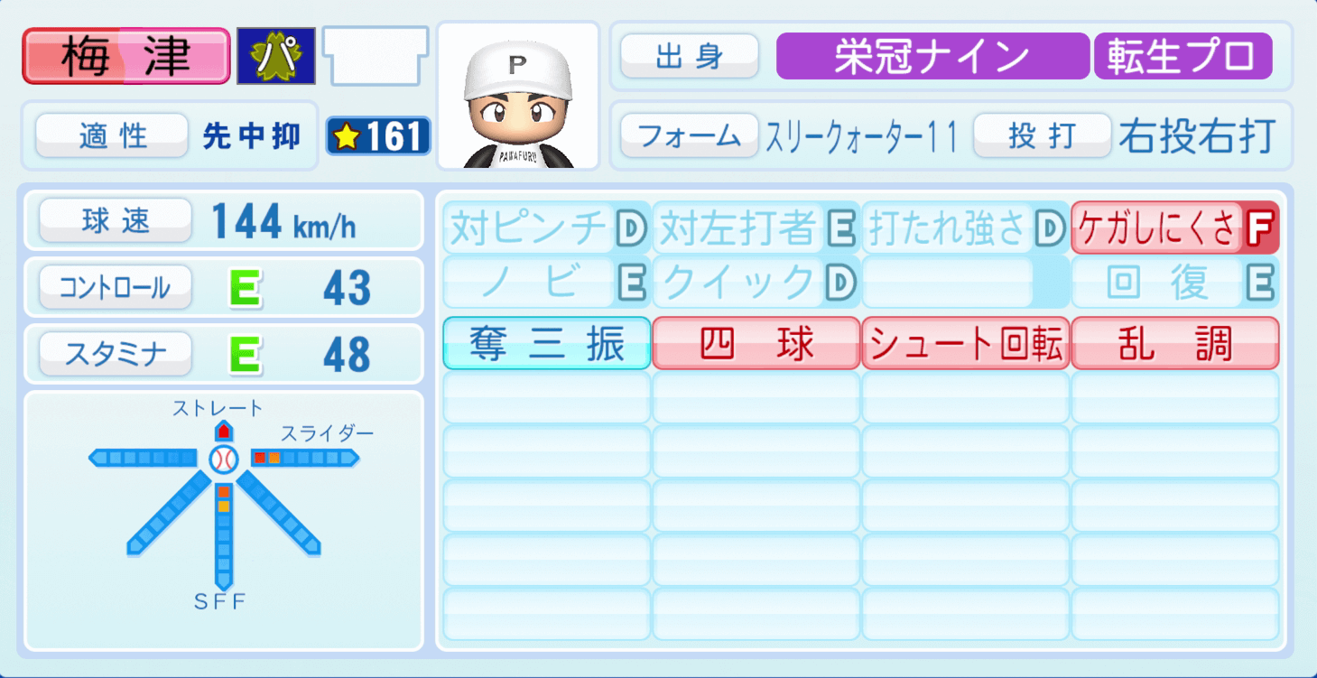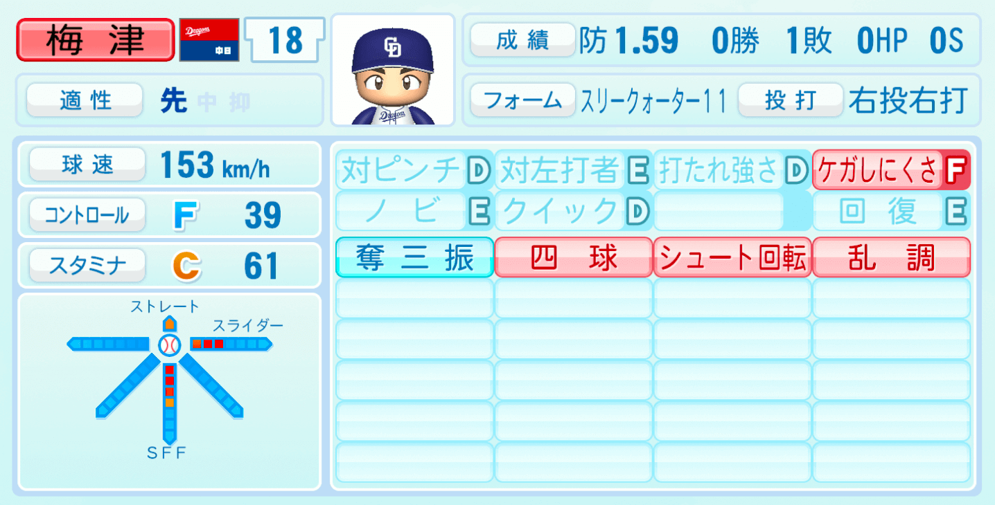 | 適性 | 先/- | 球速 | 153km/h |