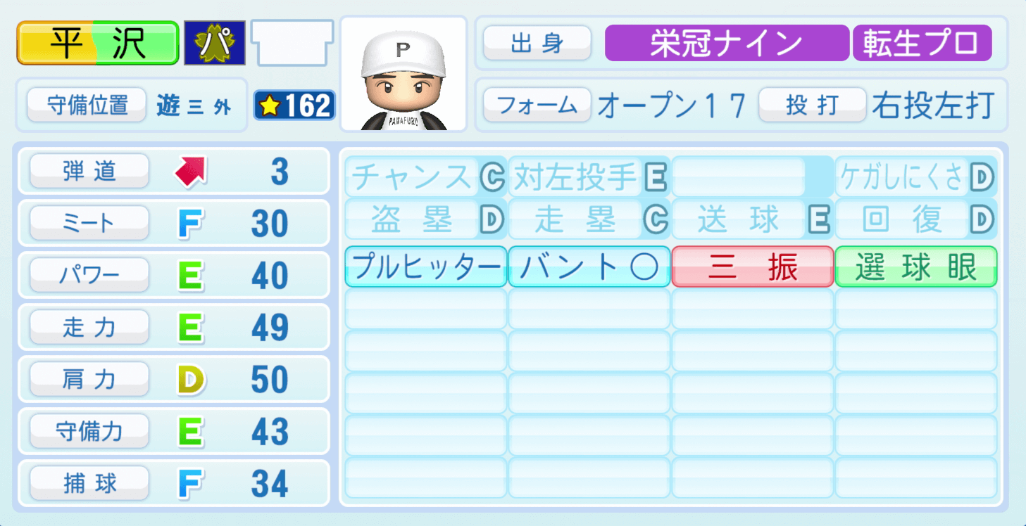 【パワプロ2022】平沢大河の選手・特殊能力と転生情報
