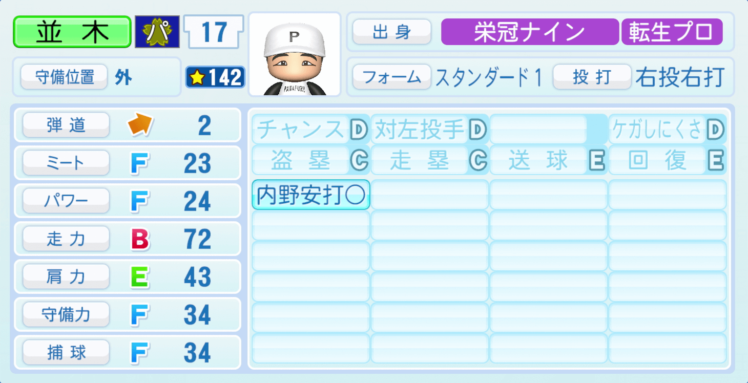 【パワプロ2022】並木秀尊の選手・特殊能力と転生情報