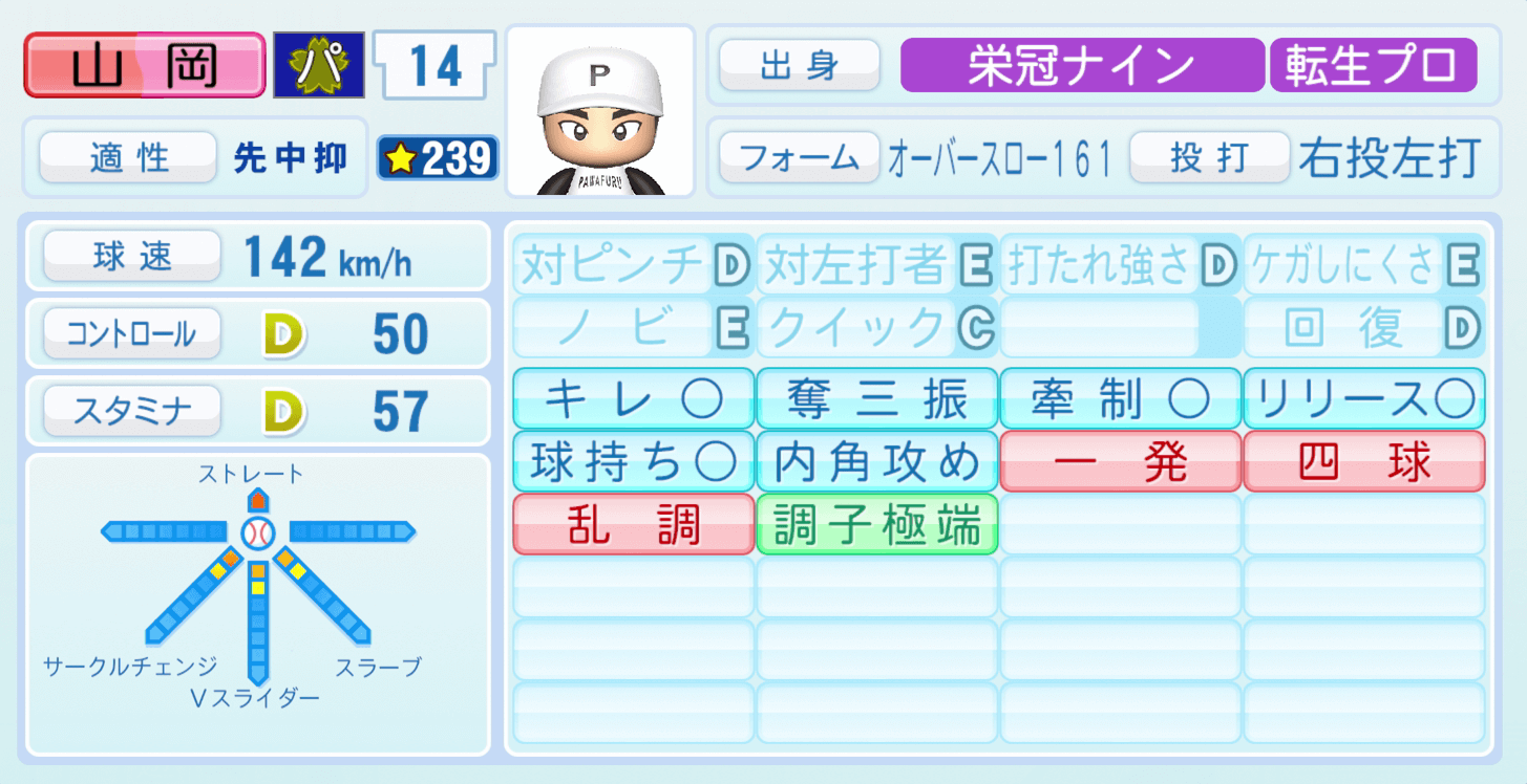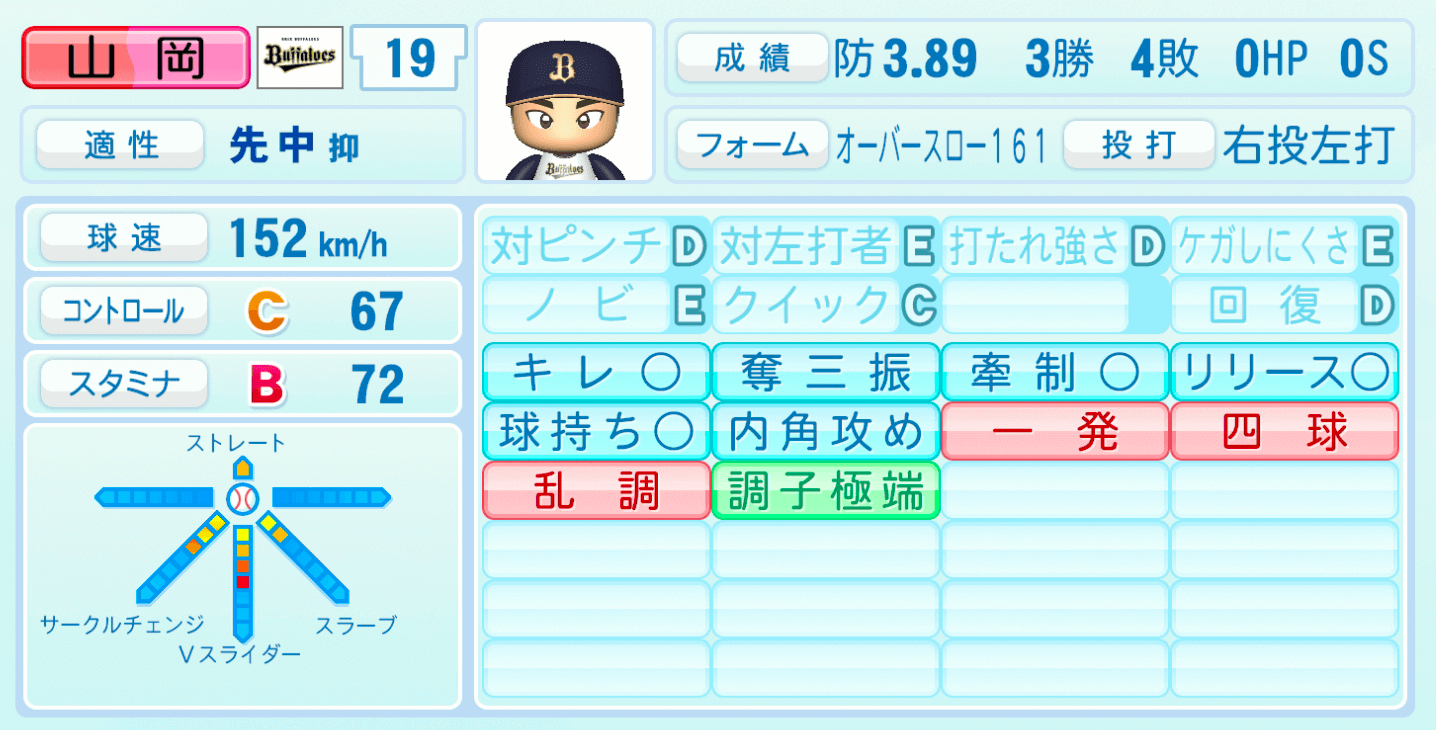 | 適性 | 先中/抑 | 球速 | 152km/h |