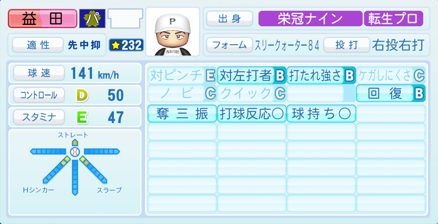 【パワプロ2022】益田直也の選手・特殊能力と転生情報