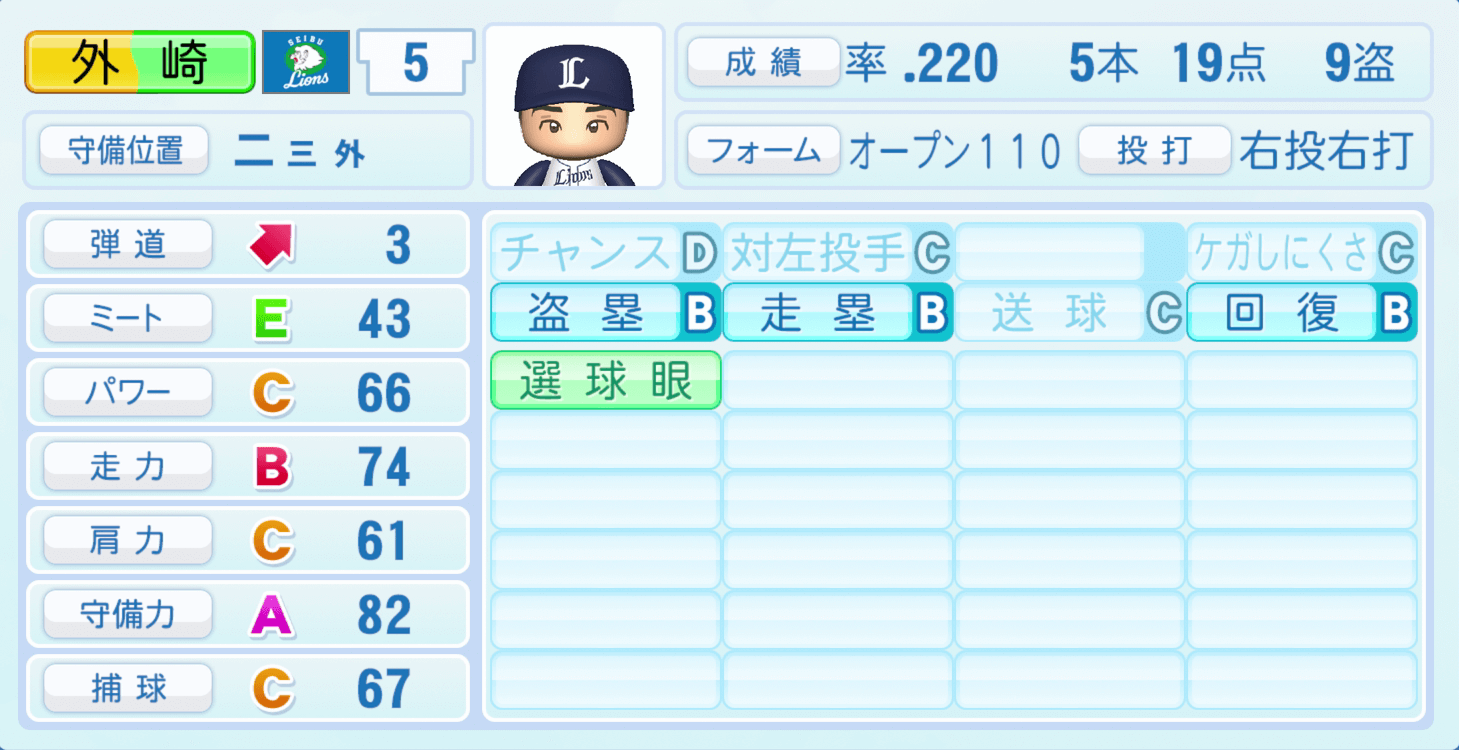 【パワプロ2022】外崎修汰の選手・特殊能力と転生情報|西武