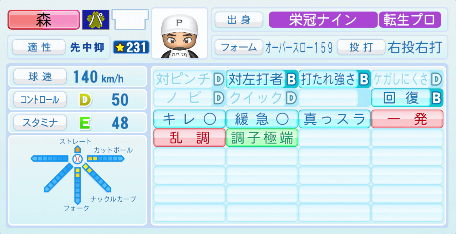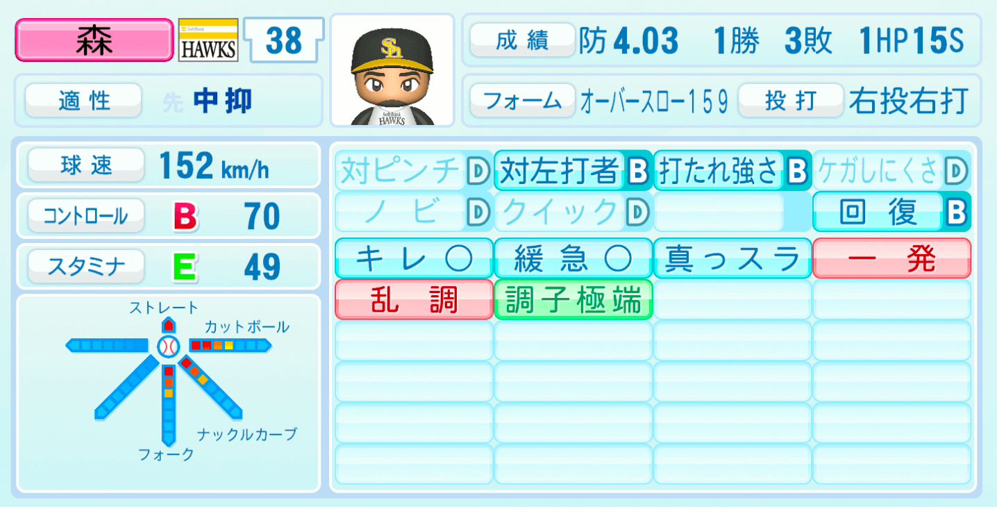 森唯斗の投手能力