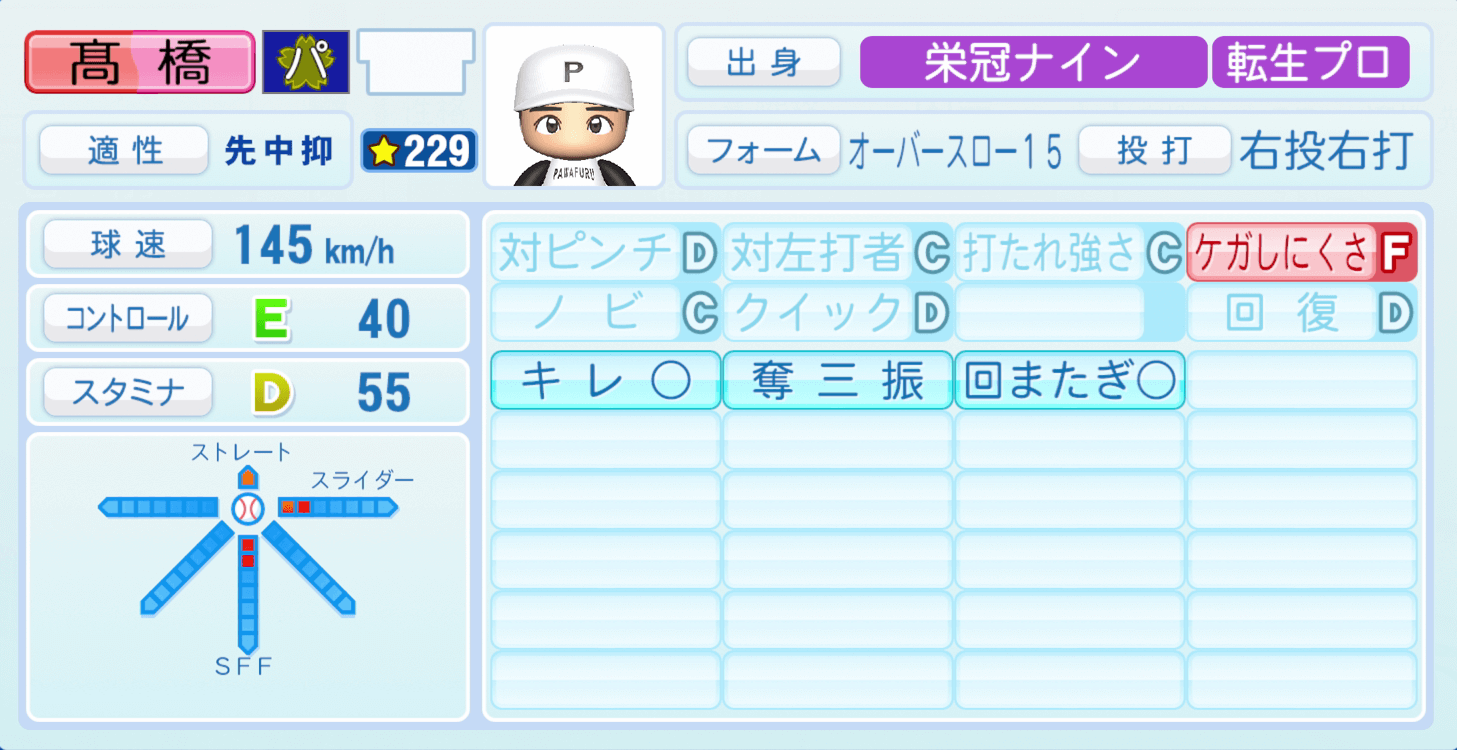 【パワプロ2022】髙橋純平の選手・特殊能力と転生情報|ソフトバンク