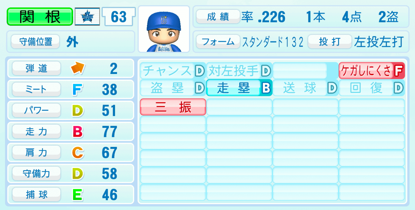 | 盗塁D | 走塁B |