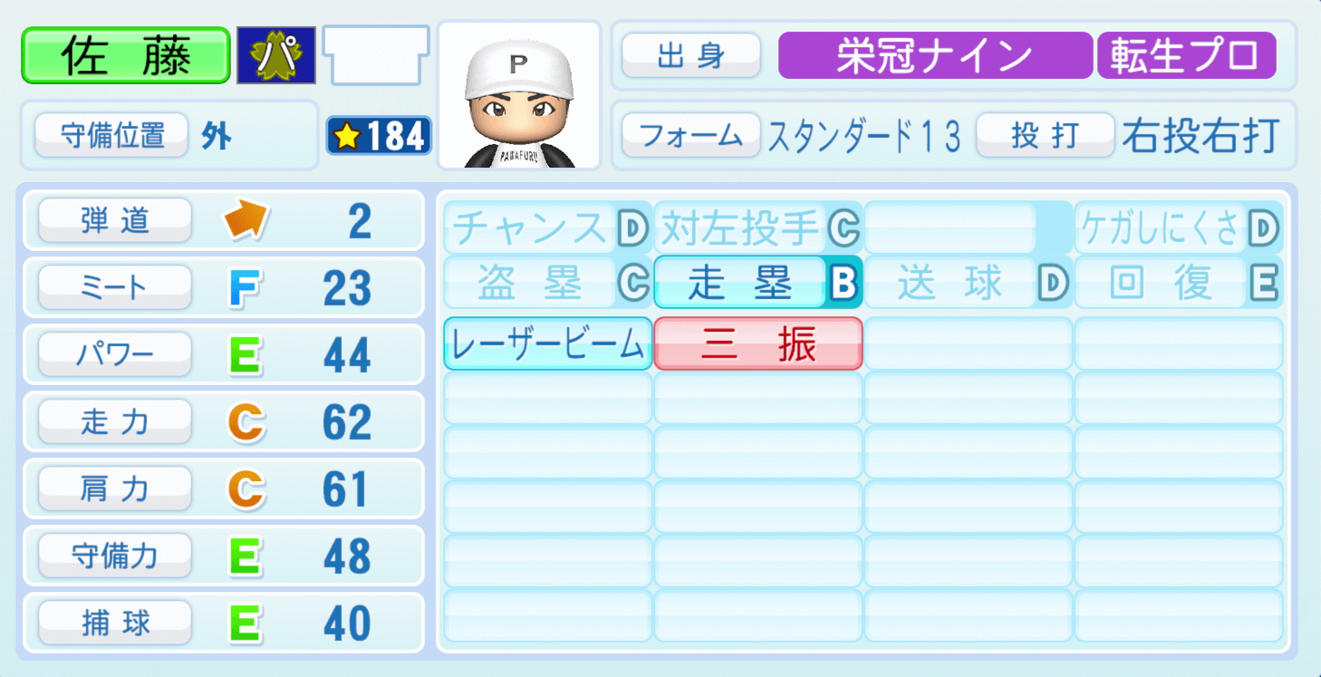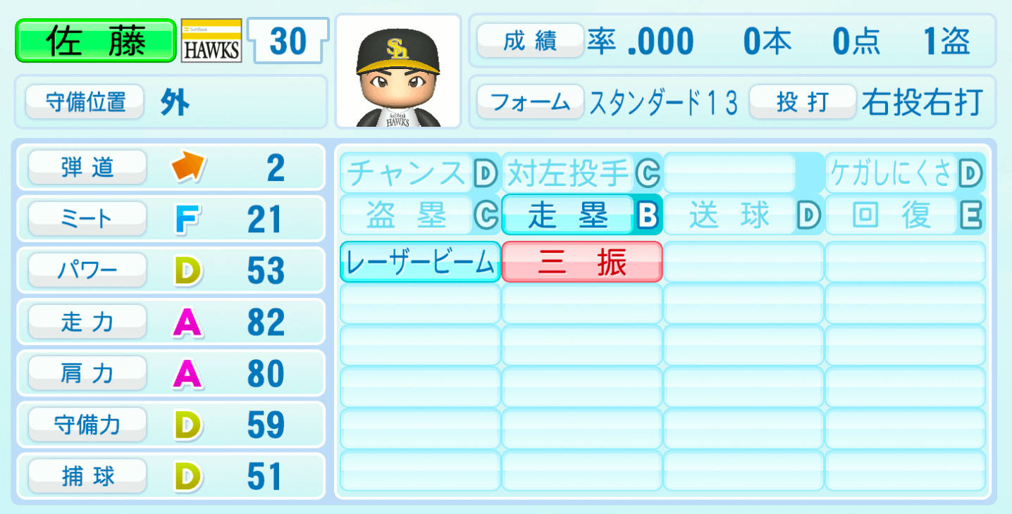 | ケガしにくさD | 盗塁C |