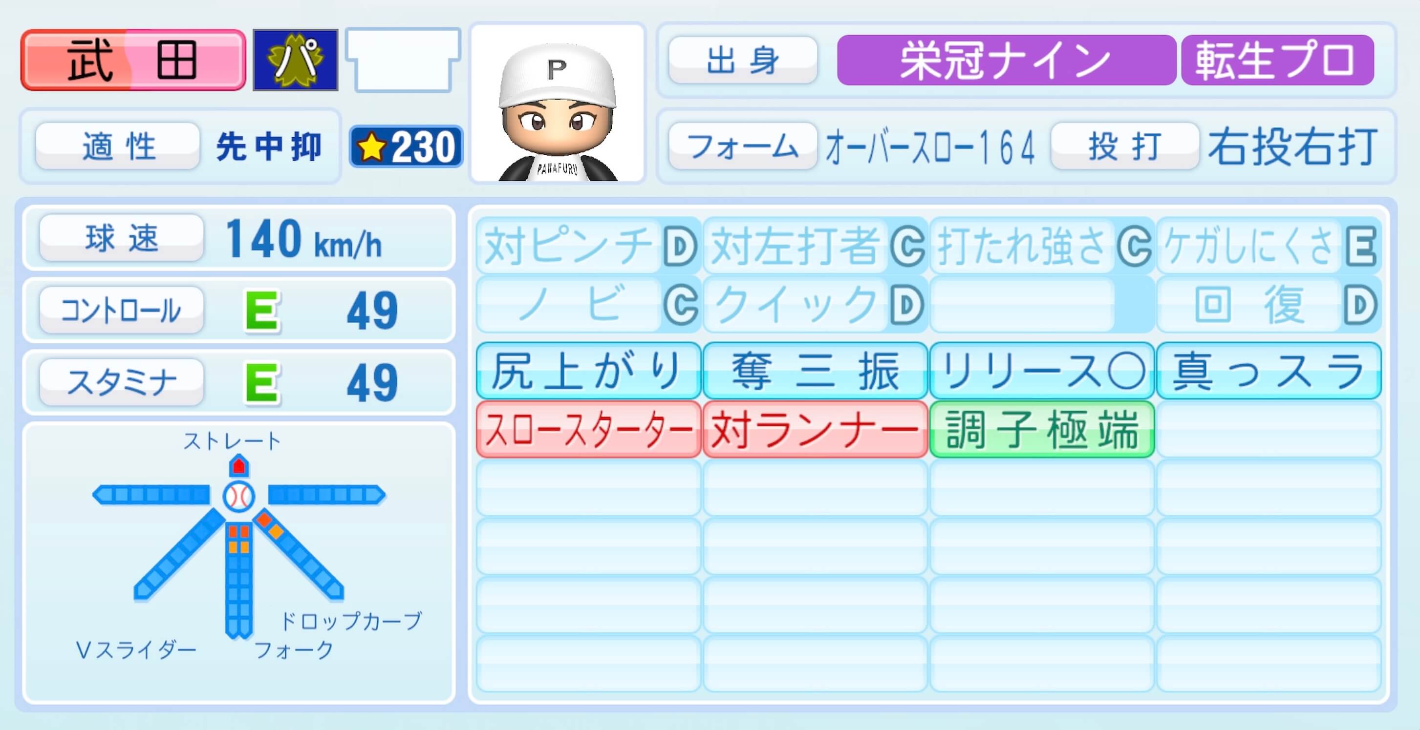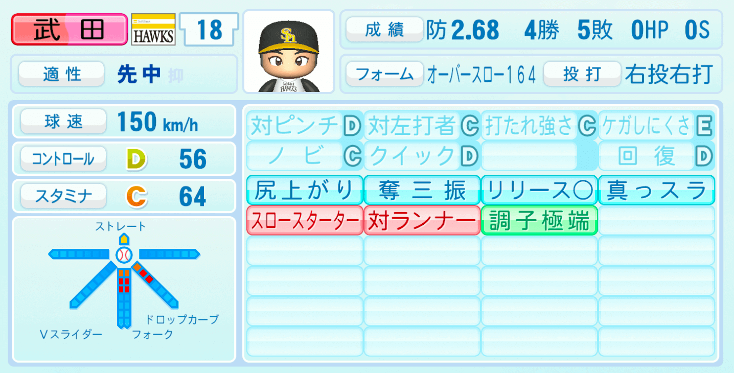 | 適性 | 先中/- | 球速 | 150km/h |