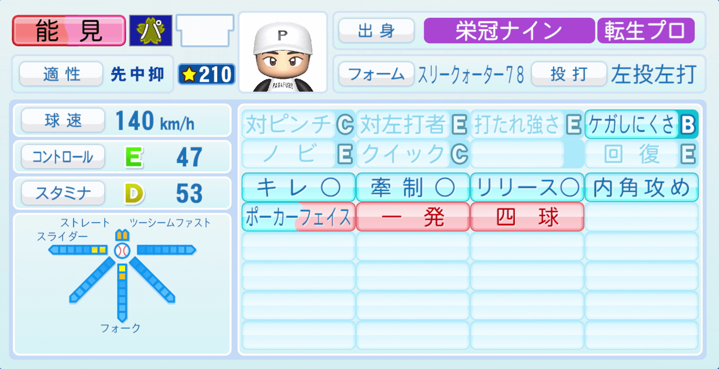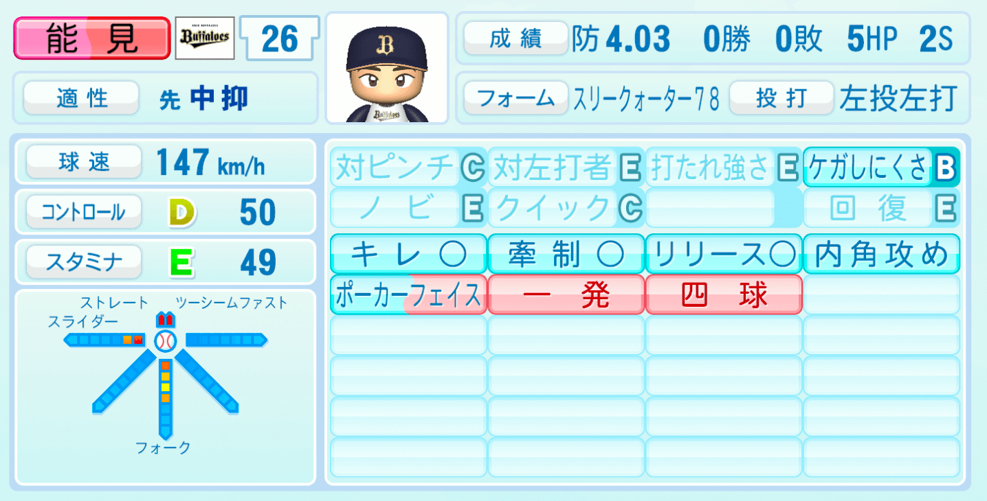 | 適性 | 中抑/先 | 球速 | 147km/h |