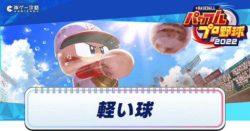 パワプロ2022における軽い球について掲載。効果や必要経験点、各モードの入手方法についても解説しているので、パワプロ2022を攻略する際の参考にどうぞ。
