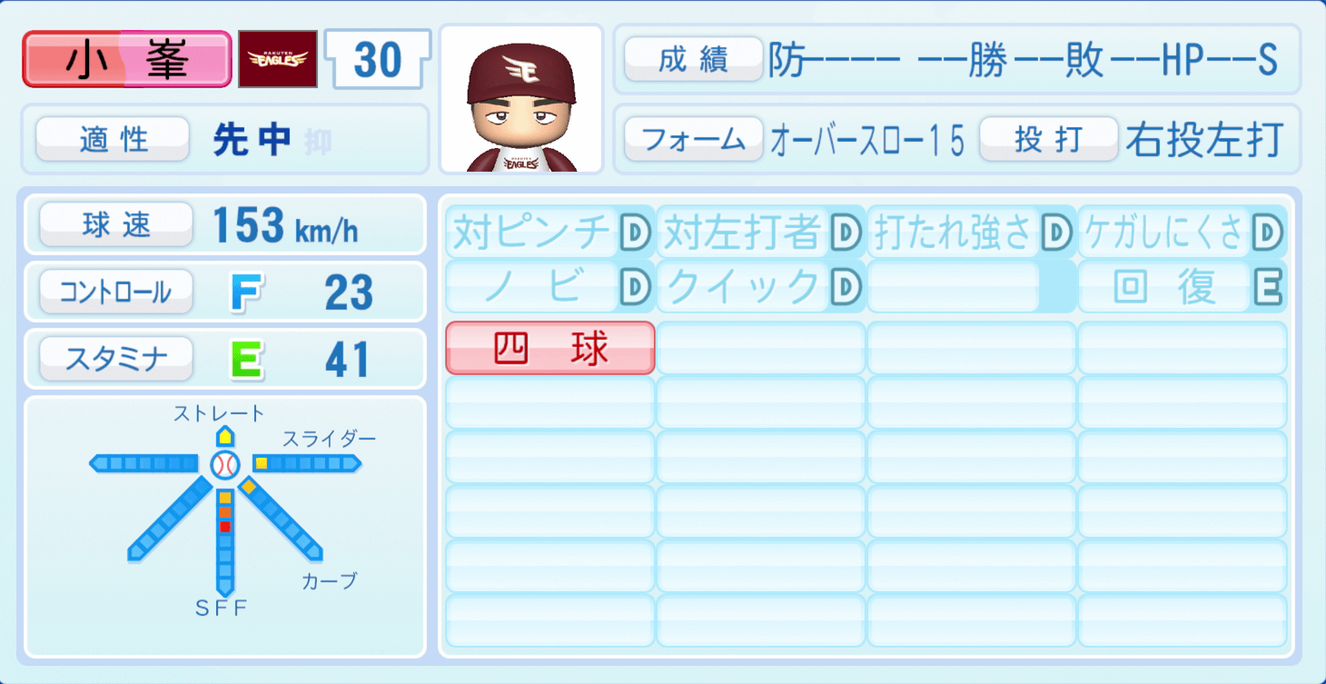 | 適性 | 先中/- | 球速 | 153km/h |