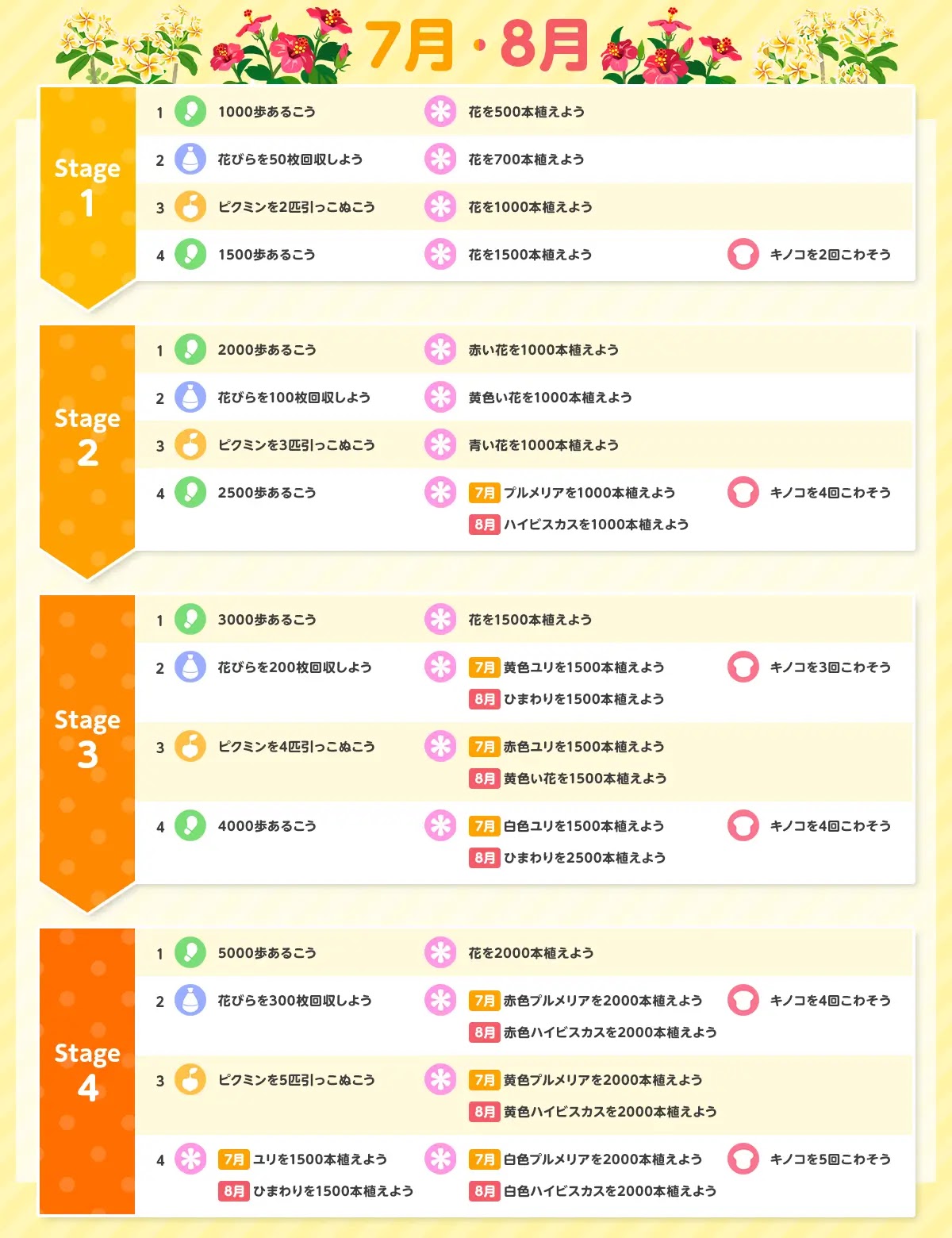 | お題4-3 | ・ピクミンを5匹育てよう ・黄色プルメリアを2000本植えよう |