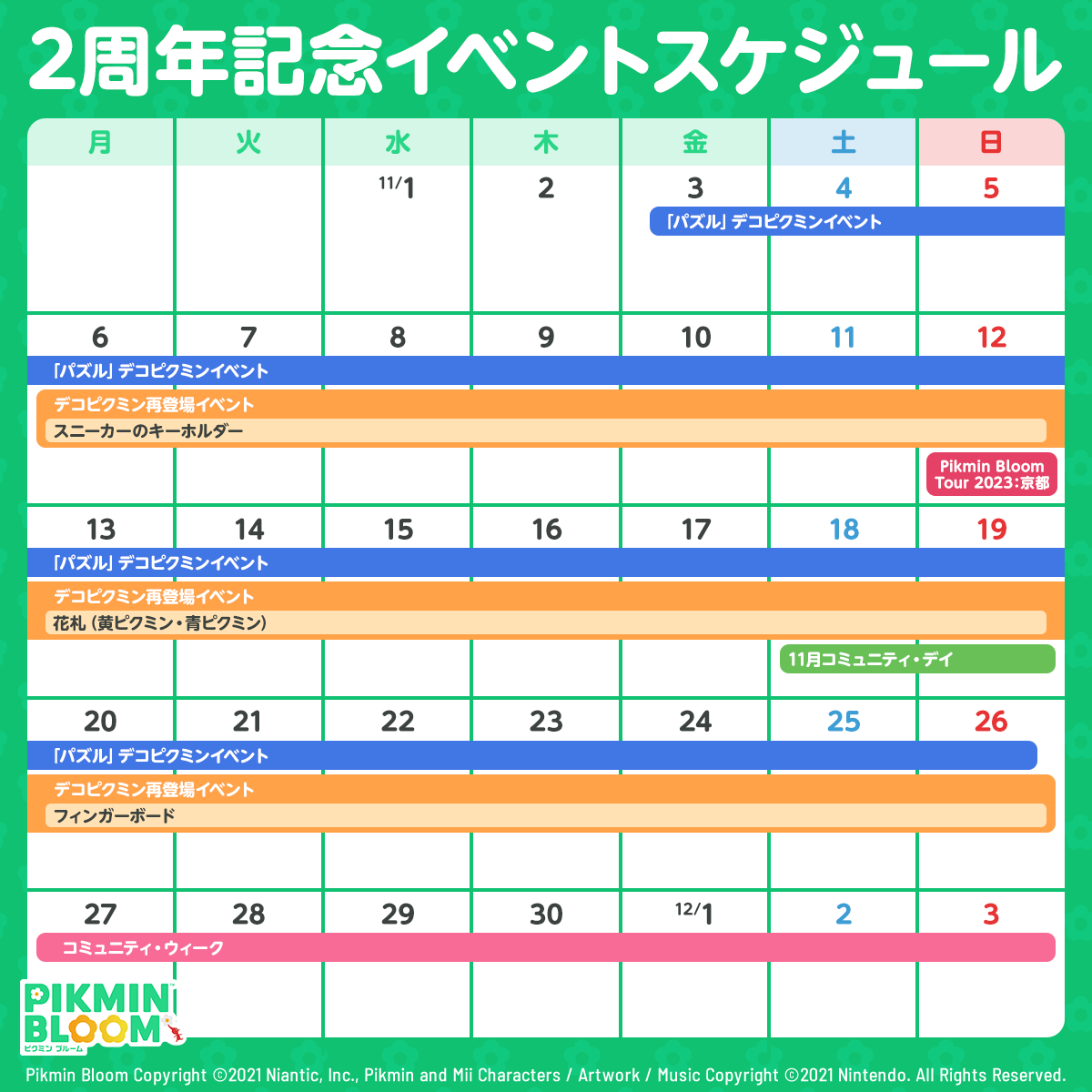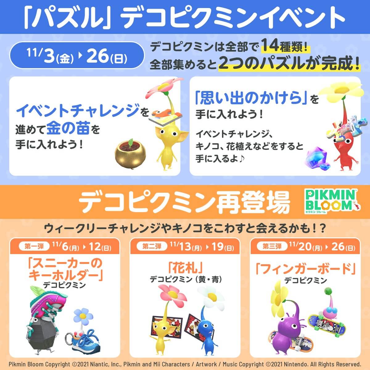 | 11/13〜11/19 | 「花札」デコピクミン (黄ピクミン6種・青ピクミン6種) |