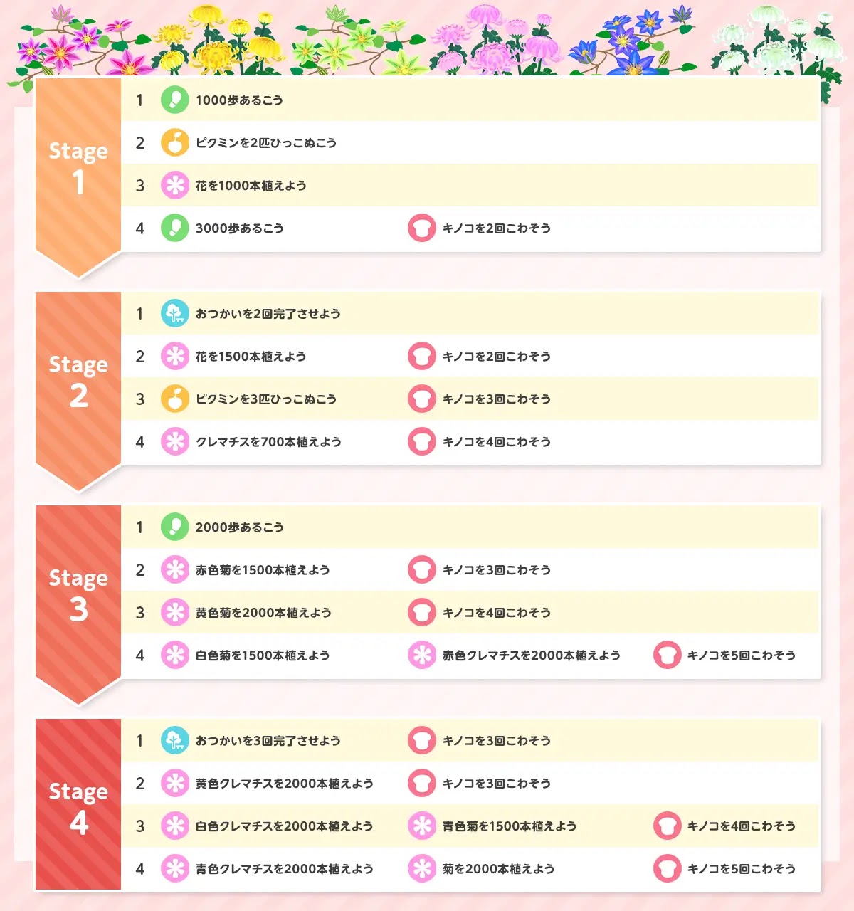 | お題4-2 | ・黄色クレマチスを2000本植えよう ・キノコを3回こわそう |
