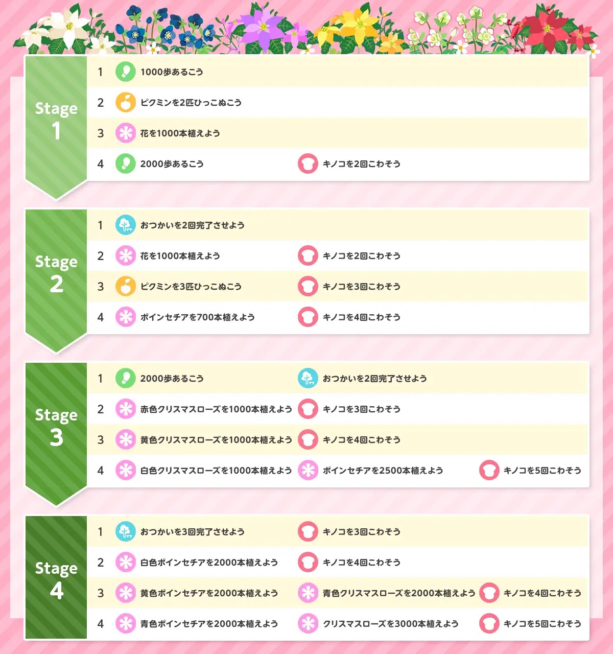 | お題2-4 | ・ポインセチアを700本植えよう ・キノコを4回こわそう |