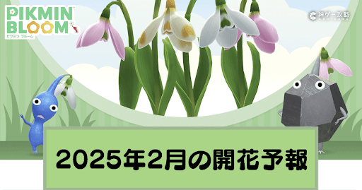 Pikmin Bloom(ピクミンブルーム)の2025年2月の開花予報を紹介!今月の新しい花やビッグフラワー予報、コミュニティ・デイの情報についても記載しているので、開花予報を確認したい方は参考にどうぞ!