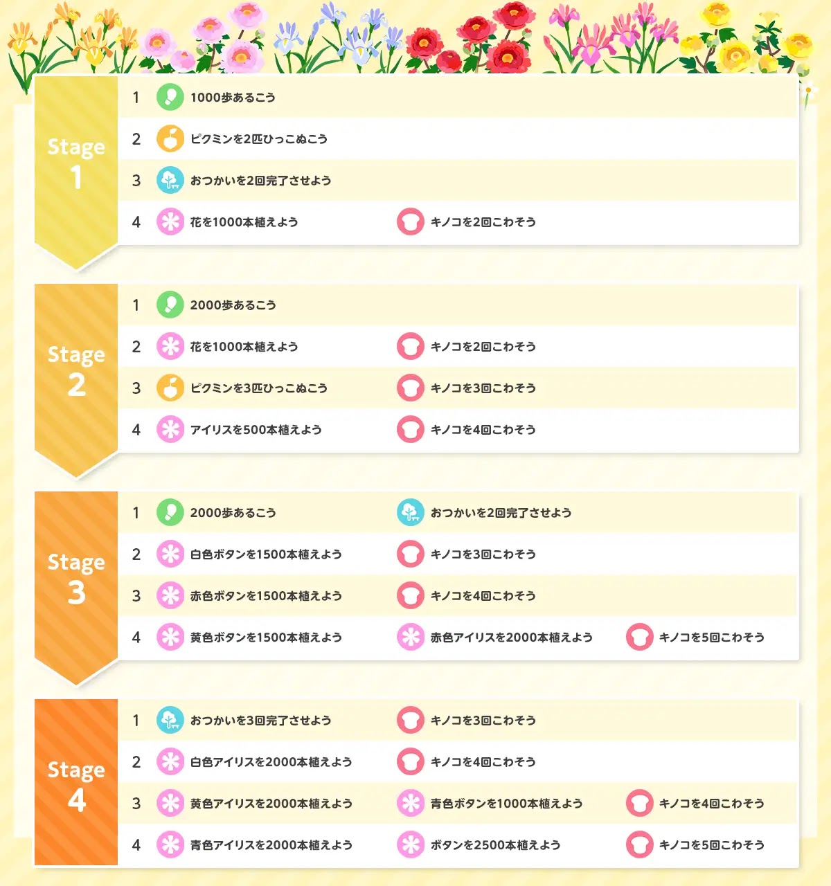 | 2-4 | ・アイリスを500本植えよう ・キノコを4回こわそう |