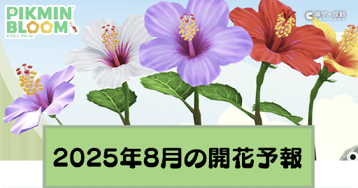 Pikmin Bloom(ピクミンブルーム)の2025年8月の開花予報を紹介!今月の新しい花やビッグフラワー予報、コミュニティ・デイの情報についても記載しているので、開花予報を確認したい方は参考にどうぞ!