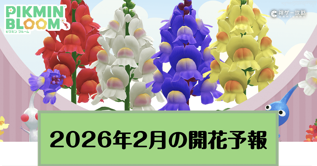 Pikmin Bloom(ピクミンブルーム)の2026年2月の開花予報を紹介!今月の新しい花やビッグフラワー予報、コミュニティ・デイの情報についても記載しているので、開花予報を確認したい方は参考にどうぞ!
