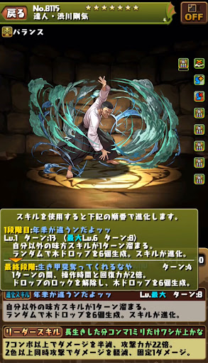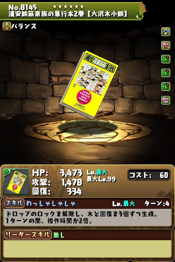 ・消せない回復/木列生成を6ターンで使える ・3個の回復ドロ強で復帰力をサポート ・変換スキルが周回で活躍【アシスト進化】 |