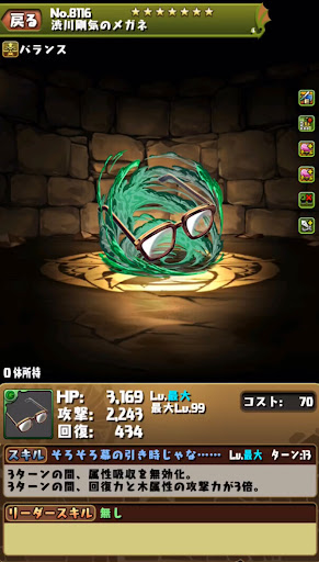【進化前】 ・全パラ2.5倍+攻撃25倍+5秒延長LS ・最大スキブ6個持ちのサブとして運用可能 ・HP/バインド/覚醒無効全回復スキルが強力 └ダメージ/属性吸収も対策できる ・リーダーよりサブ向けの性能【究極進化】 ・全パラ1.5倍+半減+攻撃24倍LS ・無効貫通と以上強化で火力を発揮 ・HP/バインド/覚醒無効全回復スキルが強力 └ダメージ/属性吸収も対策できる【アシスト進化】 |