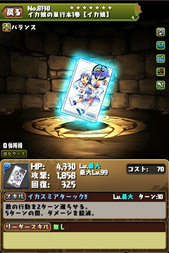 【進化前】 ・攻撃20倍+回復3倍+60%減+2c加算+2秒延長 ・属性吸収+正方形生成スキルが強力 ・コンボ強化/L字消し攻撃で火力発揮【究極進化】 ・攻撃20倍+60%減+固定500万追撃LS ・攻略と周回ともにリーダー運用可能 ・属性吸収+正方形生成スキルが強力 ・無効貫通最大3個で貫通要員にもなれる【アシスト進化】 |