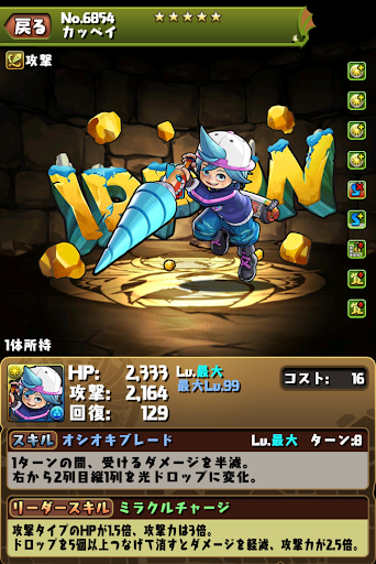 | ガムランチャー | ランダムで光ドロップを5個生成11,057ダメージ(1.5倍時:16,585ダメージ) |