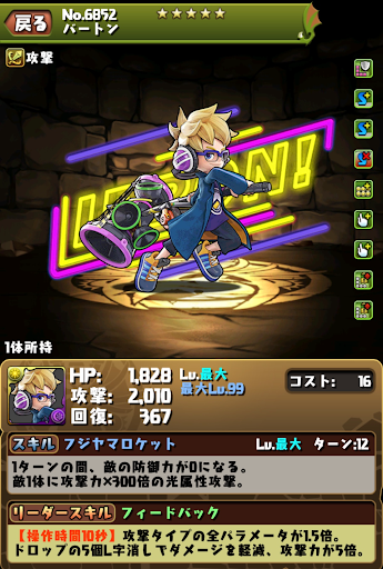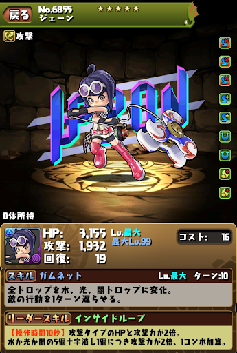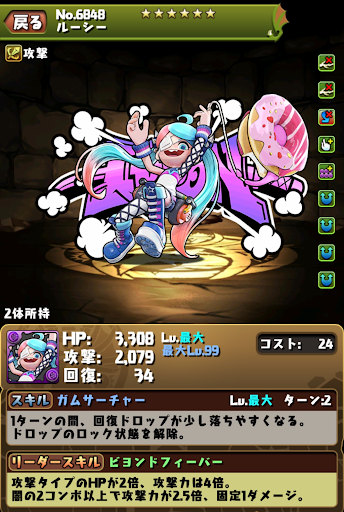 | ガムサーチャー | パズル開始位置を固定12,623ダメージ(1.5倍時:18,934ダメージ) |