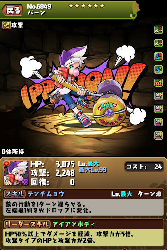 | ん〜、テエイッ | ランダムで闇ドロップを4個生成7,132ダメージ(1.5倍時:10,698ダメージ) |