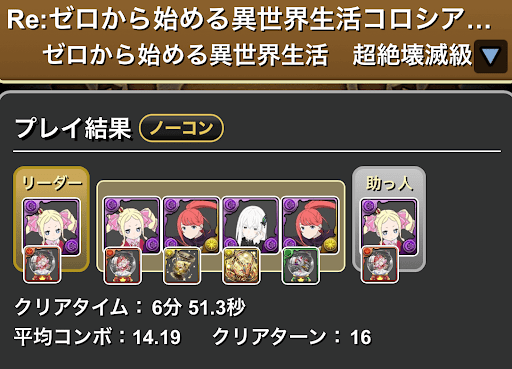 | 初クリア報酬 | リゼロコラボガチャ×1 |