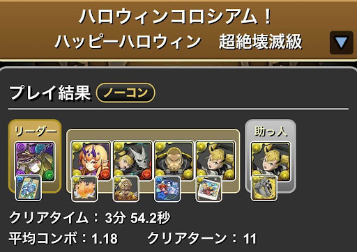 | 初クリア報酬 | ハロウィンガチャ×1 |