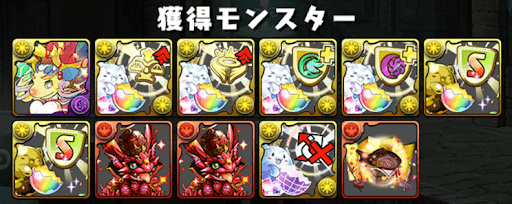 | 10F | 【特徴】 ・超根性(90%) 【先制】 ・状態異常無効(999ターン) ・火/水消せない(3ターン)【超根性発動時】 ・2,264,200ダメージ ・全ドロップを火/水に変化 ・火/水ドロップロック |