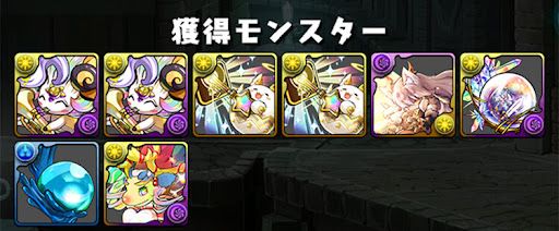 | 【先制】 ・ダメージ99%軽減(5ターン) ・覚醒無効(5ターン) ・スキル封印(5ターン) ・7×6マス化(5ターン) ・落ちコンなし(5ターン) ・4コンボ以下吸収(1ターン) 以降コンボ吸収以上のパズル教室 |