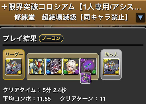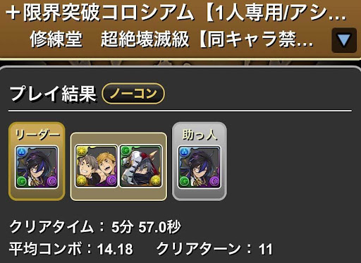| 5F | 【特徴】 ・HP450億 【先制】 ・状態異常無効(999ターン) ・956,340ダメージ ・全ドロップを5色+回復に変化 |