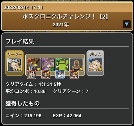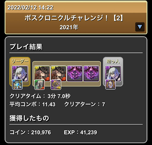| 獲得経験値(パズパス) | 7,420(7,791) |