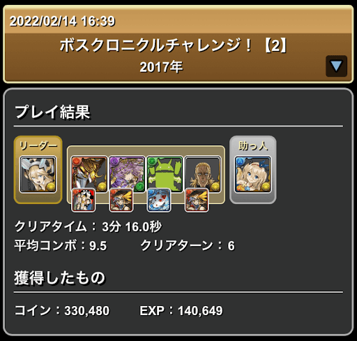 | 獲得経験値(パズパス) | 133,951(140,649) |