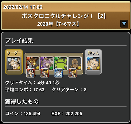 | 獲得経験値(パズパス) | 173,400(182,070) |