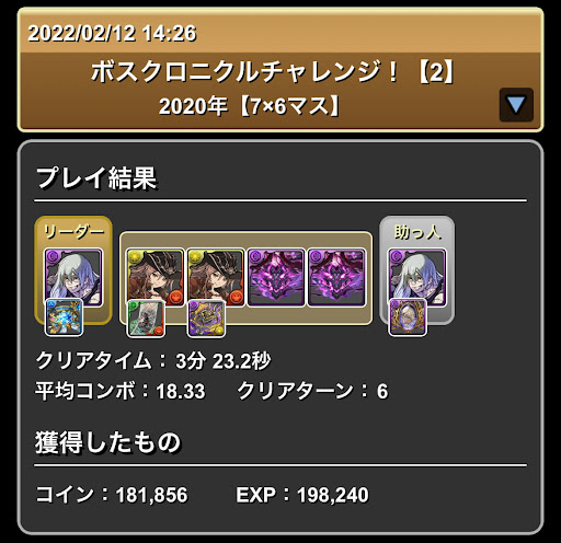 | 獲得経験値(パズパス) | 18,094(18,999) |