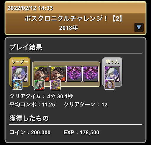 | 獲得経験値(パズパス) | 157,911(165,807) |