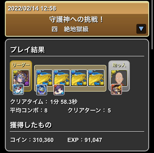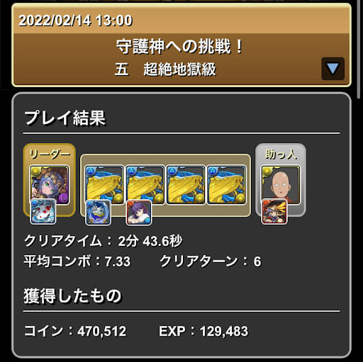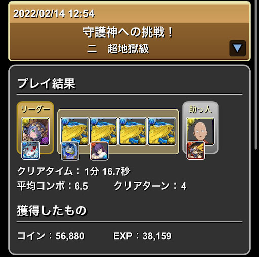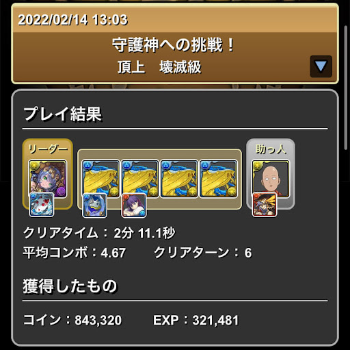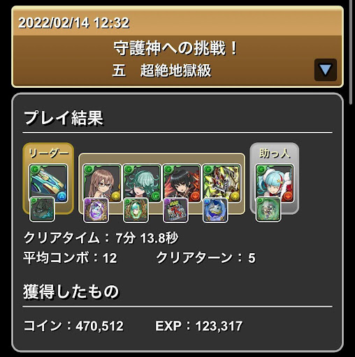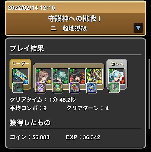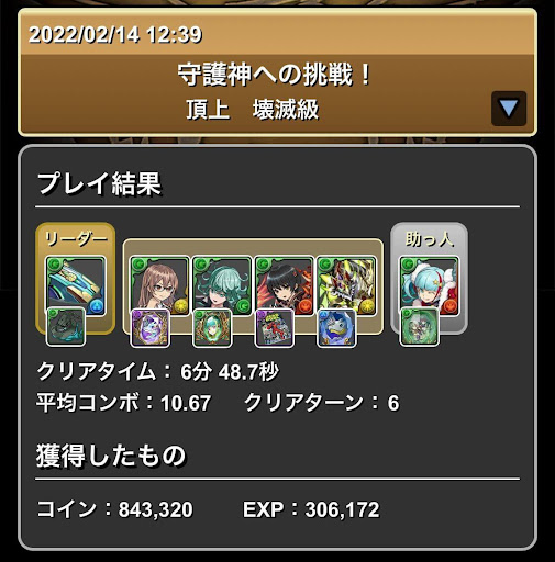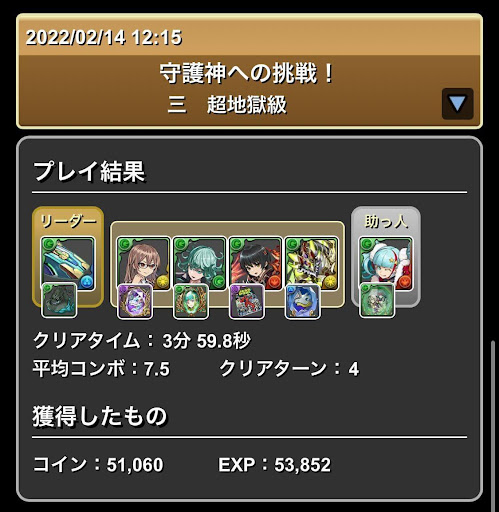 | 3F | 【特徴】 ・HP77,000,000 【先制】 ・状態異常無効(999ターン) ・6コンボ以下吸収(1ターン) ・操作時間75%減少(1ターン) |