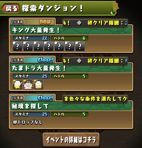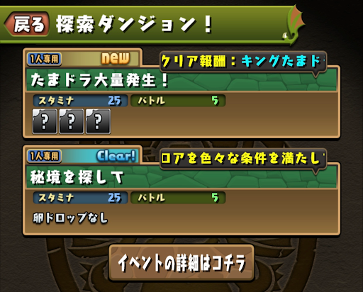 「秘境を探して」をスキルなしで攻略すると、「たまドラ大量発生」が出現する。