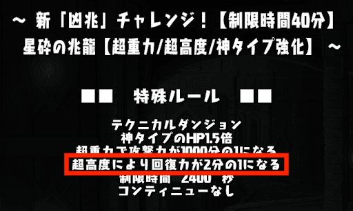 星砕の兆龍では、回復手段を用意しよう。超高度で回復力が半減している上にトゲギミックが多く出現するため、回復ドロ強やHP回復スキルを用意して回復力を高めよう。