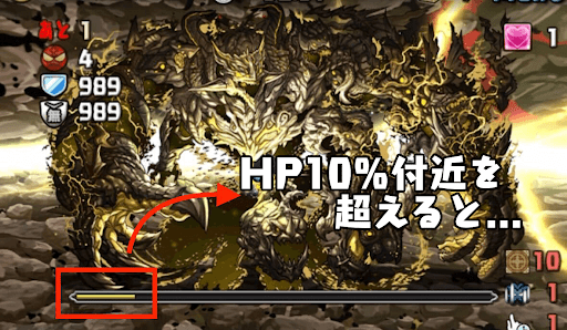 ボスのアグリゲートは、HP10%付近で発狂ゾーンに入る。ただし、1ターンだけ猶予があり、覚醒無効回復スキルがあれば次のターンで撃破が可能。