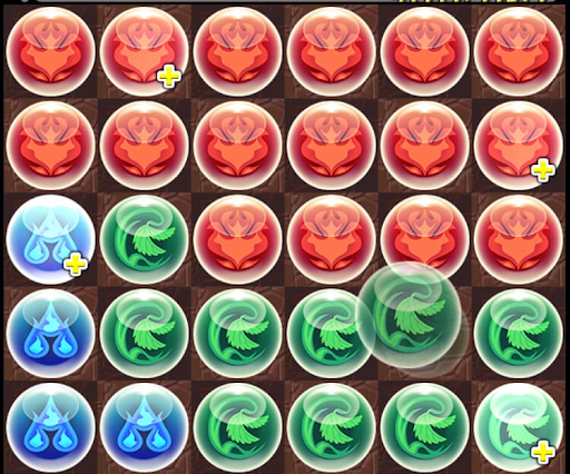ドロップ数が多い1色を盤面に端に寄せた後は、残り2色のドロップでパズルを組もう。パズルが苦手な場合、1色を寄せる際の形を覚えておくと限りなくミスを減らせるためおすすめだ。