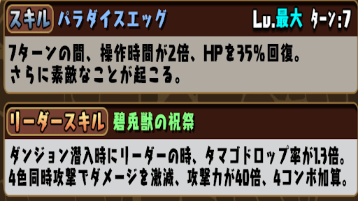 ラヴィッシュ降臨は、交換素材を集めない場合も、本体を最低1体確保しておくべき。タマゴドロ率アップリーダーとして、周回で運用機会があるからだ。