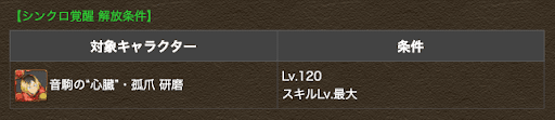 孤爪研磨をLv120+スキルLv最大(Lv51)まで育成すると対象キャラのシンクロ覚醒を解放できる。