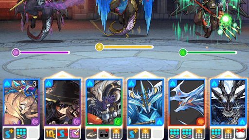 | 【覚醒スキル】 最上段1列を水に変化。1ターンの間、攻撃力と回復力が1.5倍。(3ターン) |