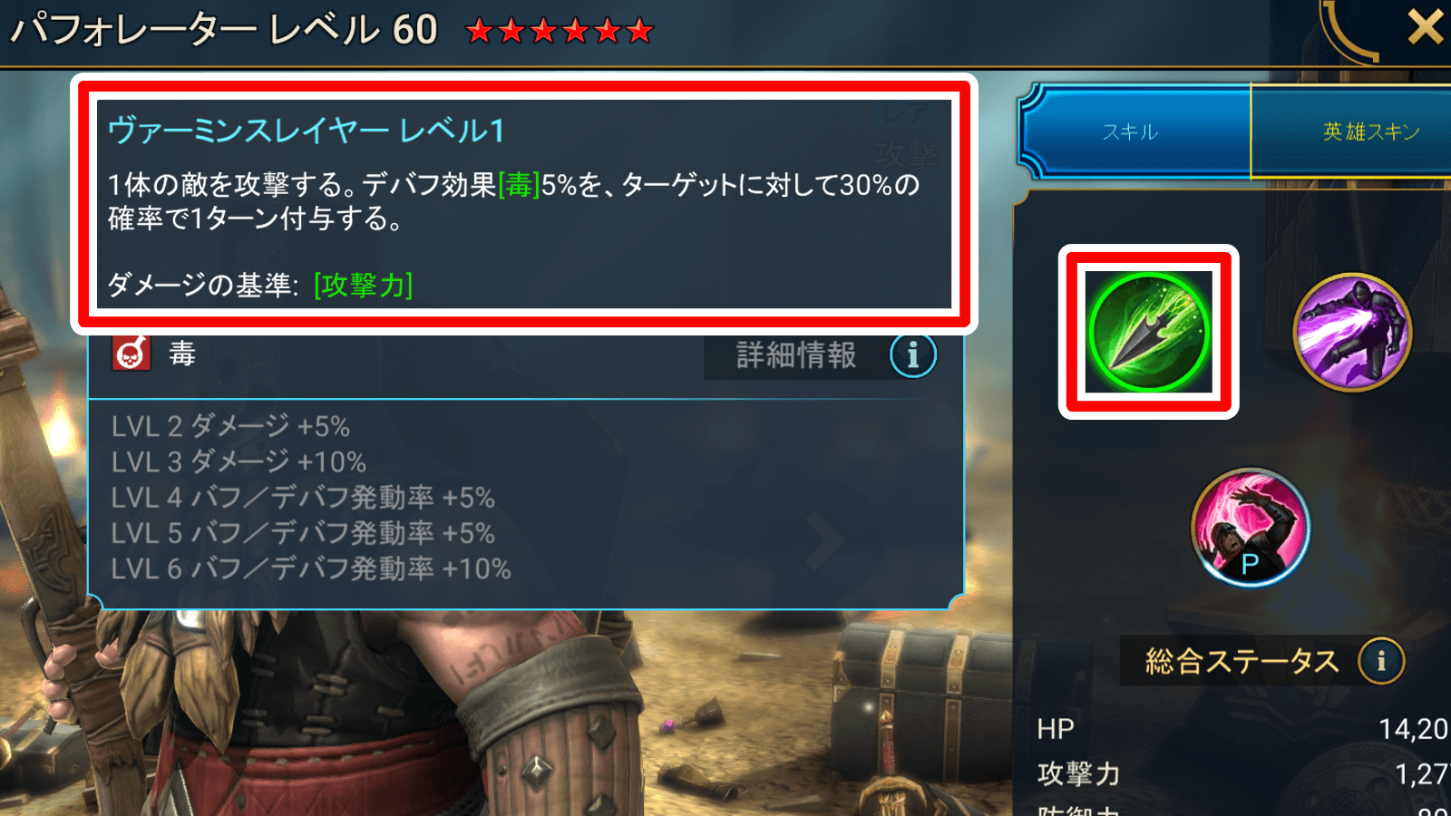 | LV5 | バフ/デバフ発動率+10% |