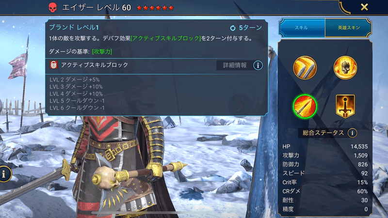 | 効果 | 1体の敵を攻撃する。デバフ攻撃アクティブスキルブロックを2ターン付与する。 |