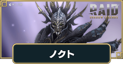 RAID:Shadow Legends(レイドシャドウレジェンド)の「ノクト」について紹介。ノクトの特徴や役割、スキル効果やおすすめ遺物についても掲載しているので、RAID:SLをプレイする際の参考にどうぞ。