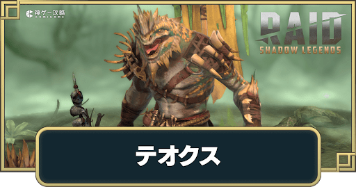 RAID:Shadow Legends(レイドシャドウレジェンド)の「テオクス」について紹介。テオクスの特徴や役割、スキル効果やおすすめ遺物についても掲載しているので、RAID:SLをプレイする際の参考にどうぞ。